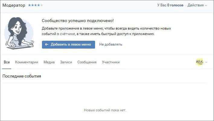 На этом все, Модератор работает из ВКонтакте, можно вывести его в левое меню и отслеживать оповещения из одного приложения.