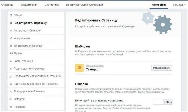 Есть "Услуги", "Компания", "Площадки", "Некоммерческая организация", "Политики", "Рестораны и кафе", "Покупки" или "Стандарт". У них немного различается функциональность и расположение элементов, но вкладки можно потом настроить, отключив ненужные и перетасовав очередность.