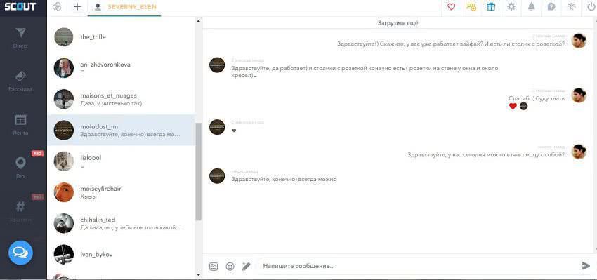 Scout — позволяет удобно переписываться в директе с компьютера, отправлять в письма картинки,тексты и рабочие ссылки, а еще настраивать рассылку по своим подписчикам.