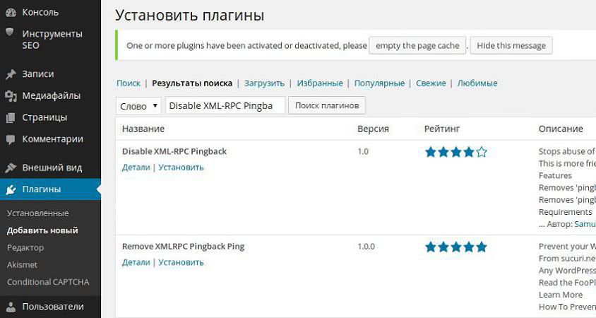 - Удаляет pingback.ping и pingback.extensions.getPingbacks из интерфейса XML-RPC;