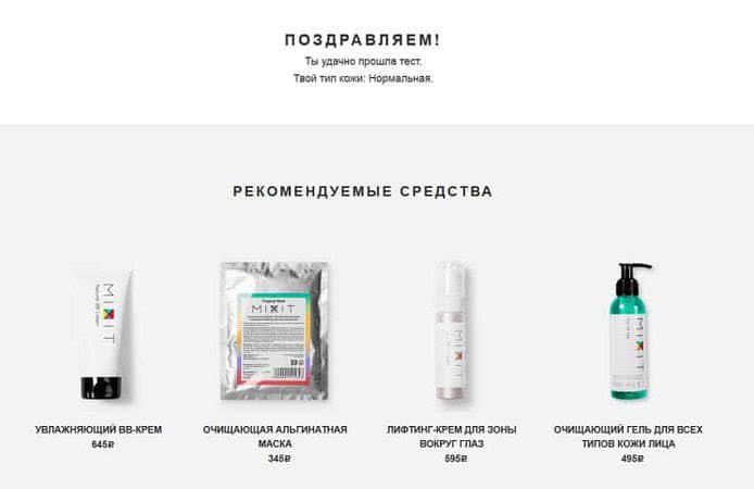 Косметическая компания предлагает определить тип кожи посетительницы сайта и рекомендует подходящие средства.