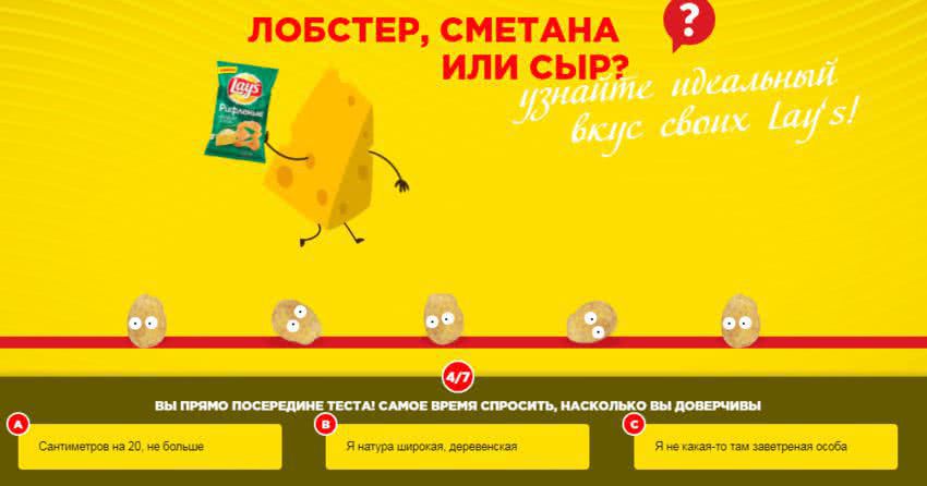 Lays сделали интересный тест с шуточными вопросами, он ничего не продает, но повышает лояльность к бренду.