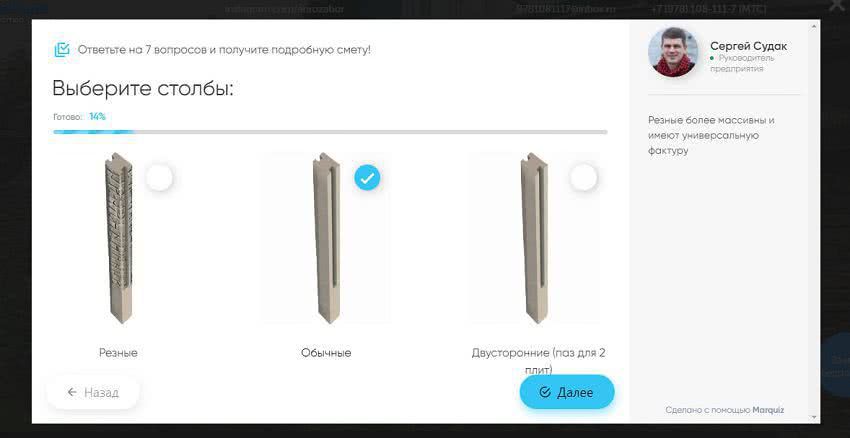 Конструктор работает только с 1-С Битрикс. 5900 рублей стоит создание квизов для существующего сайта, можно заказать разработку теста по техническому заданию, отдельный мини или полноценный лендинг с квизом.