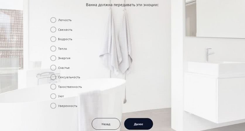 Для компании разработали тест «Какое сочетание цвета ванной комнаты вам подходят лучше всего?». В него который включили вопросы для подбора плитки в ванную: какие стили оформления нравятся, какое должно быть настроение, насколько большая комната и так далее.