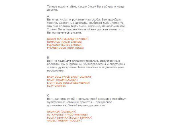 На сайте этого магазина не очень удачный тест, но к каждому из результатов он предлагает несколько ароматов, которые можно купить по ссылкам.