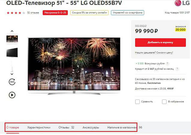 Если все будет на одном месте, для ранжирования будет непонятно, что это за страница — информационная с полезным контентом или коммерческая? Поэтому рекомендуется разделять отзывы, описание и характеристику, и назначать им отдельные URL. Имеются в виду не якоря на одной странице, а отдельные страницы со своими адресами.