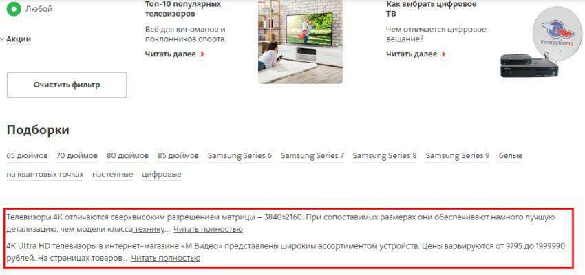 Тексты на страницах есть только у двух ресурсов из десяти, причем они находятся не на первых местах в выдаче. Из этого примера следует вывод, что совсем не нужно писать тексты для сайта магазина.