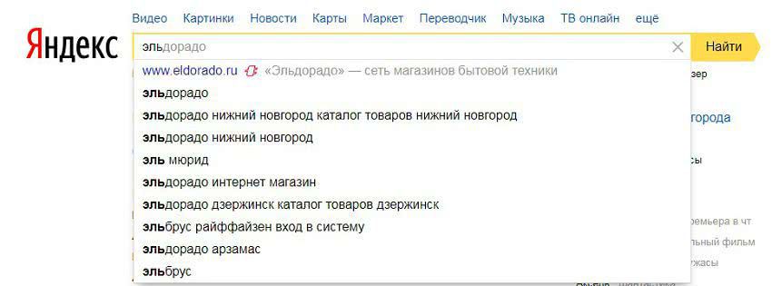 Но изучим внимательнее: на верхних позициях находятся популярные магазины и площадки — M.Видео, Mediamarkt, Эльдорадо, Авито и другие. В Яндексе у этих магазинов есть приоритет в ранжировании, поскольку у таких сайтов высокий type-In — количество прямых переходов на сайт, связанное с запросами по названию бренда. К примеру, пользователь ввел «Эльдорадо» в поисковик и перешел на сайт магазина Эльдорадо.