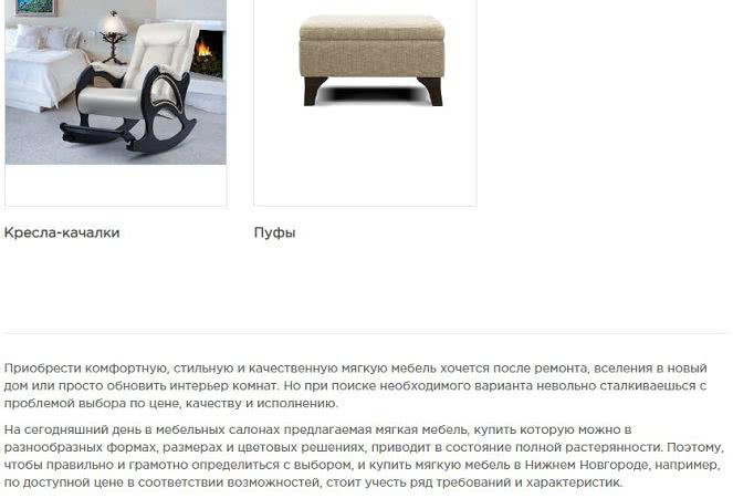 Листинги, где мало товаров, могут выпадать из выдачи как не очень качественные, либо склеиваться друг с другом в поиске. В этом случае можно добавить текстового контента и таким образом сделать страницу уникальной. Есть и другие методы: имитировать большой ассортимент, разделив товары по свойствам и характеристикам, добавить блок «часто покупают», где товары будут те же, но с другими анкорами.