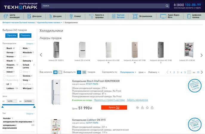 Сайт technopark.ru/holodilniki/ стоит в топ-10, причем из выдачи мы попадаем не на главную страницу сайта, а на страницу категории.