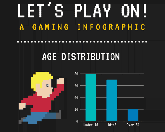 Одной из тенденций, которая проявляется в молодых брендах, является использование современного «ретро» дизайна, также называемого «неровным» художественным стилем. Инфографика, использующая его, обычно включает отсылку на видеоигры. Например, инфографика ниже использует символ, который напоминает Nintendo's, Super Mario:  Так же, как плоский дизайн, современный ретро использует простые цвета с очень маленькими стилистическими элементами, такими как градиенты, текстуры, прозрачность и т. д. Основное отличие — особые, блочные характеристики элементов дизайна в современной ретро-инфографике.