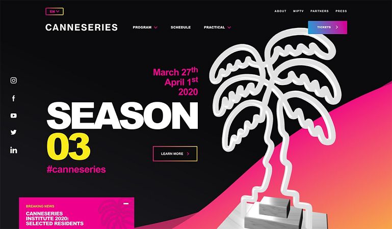 Canneseries использует фотографию трофея, которая выглядит почти как иллюстрация с изображенными на заднем плане элементами и значки с похожими иллюстрациями.