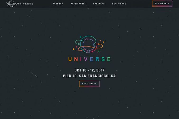 использует радужные цвета для продвижения своей конференции в этом году. На простом веб-сайте используется веселый логотип в цветах радуги и кнопка для продажи билетов. Что отличает этот дизайн от многих других радужных эстетик, так это то, что он плоский, и нет градиента для цветов. Каждая строка логотипа отличается цветом, как и буквы. Градиент используется только для кнопки CTA.