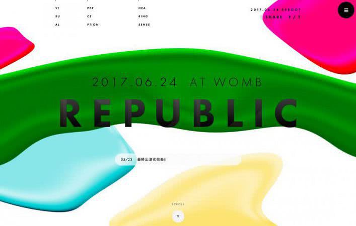 использует цвет для навигации. Элементы меню представлены необычным способом, находясь в нижней части экрана и работая только с прокруткой, чтобы отображать различные видеоклипы. Хотя так делать не рекомендуется, здесь это работает. Радужные цвета заставляют пользователей взаимодействовать с ними, и помогают людям понять, как пользоваться сайтом.