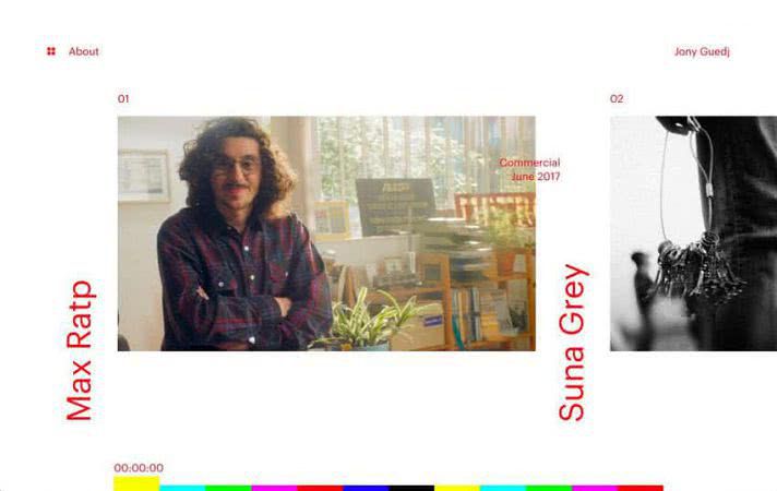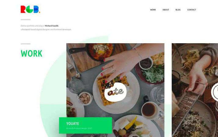 использует логотип радуги для своего портфолио и последующей навигации. Он работает почти отлично благодаря его инициалам — RGB — и соотношению с выбранными цветами. Не всем так повезет, но это показывает, как логотип в ярких цветах может быть эффективным в простой схеме дизайна.